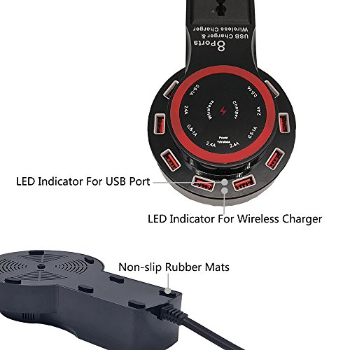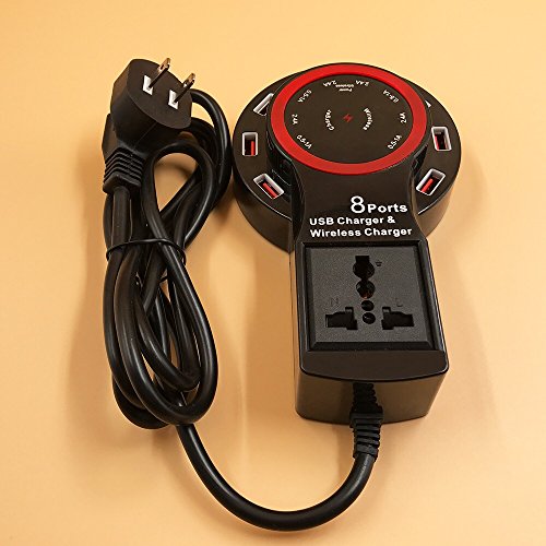 CHINIC Home/Office Wireless Charger Desktop Charger 8 USB Port with 1 AC Outlets Charging Station for all Smartphones Qi-Enabled Devices and USB Devices(Black)