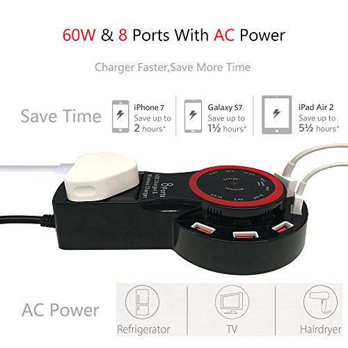 Super Charging Station: The charging station features 60W&8 ports with 1 AC power wireless charging and wired charging; All the devices can be fast and well charged.
