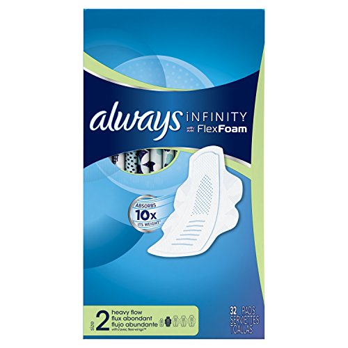 Always Infinity Unscented Pads with Wings - Heavy Flow 32-Count (Pack of 2)