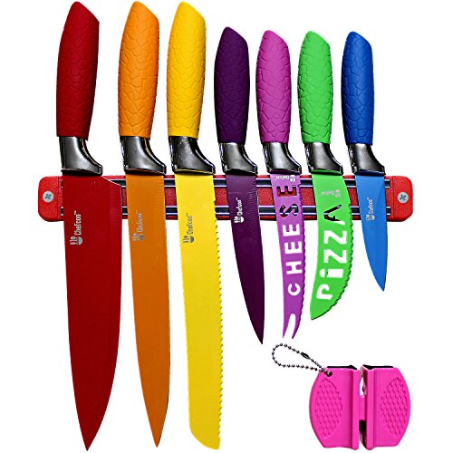 -. Title : Küchenmesser Set Plus Magnetstreifen Und Sharpener Von Chefcoo™ Kochen Besteck-Tools - Beste Farbe Küche Gadgets - Enthält Käse, Pizza, Paring, Utility, Slicer, Brot Und Chef Messer
