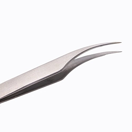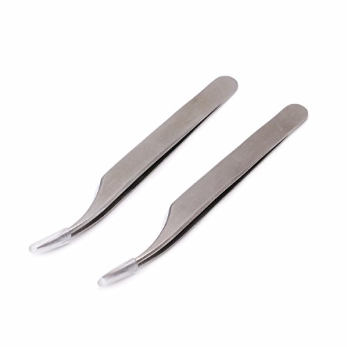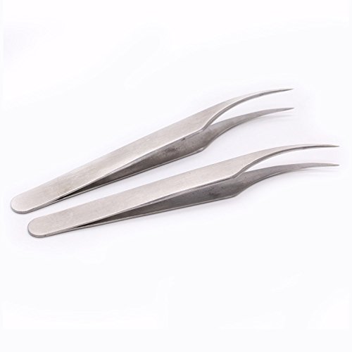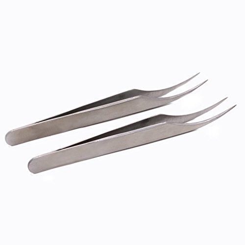 HUELE 2pcs Stainless Steel Straight and Curved Head Tweezers for Eyelash Extension-Silver