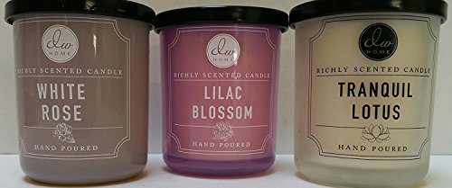 Variety Bundle of 3 DW Home Richly Scented Candles in Lilac Blossom, White Rose, and Tranquil Lotus Scents...4 oz Each Candle