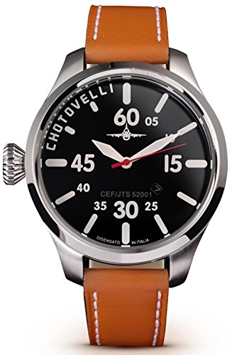 -. Title : Aviator Pilot Watch Steel Brown Leather Band Men's Italian Army, Chotovelli 5250-1