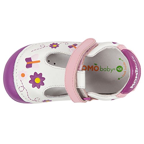 -. Binding : Apparel -. Brand : Momo Baby -. Department : baby-girls -. Feature : Accepted by the American Podiatric Medical Association (APMA) / Rubber soles with deep tread pattern increases slip-resistance / Flexibility of the sole enables a better natural shift of weight from the back to front of the shoe when walking / Fan-shaped toe box resembles the shape of child's foot, allowing the big and small toe to move freely / Adjustable straps with Velcro makes it simple to get on and off -. Label : Momo Baby -. Manufacturer : Momo Baby -. PackageQuantity : 1 -. ProductGroup : Shoes -. ProductTypeName : SHOES -. Publisher : Momo Baby -. Studio : Momo Baby -. Title : Momo Baby Girls First Walker/Toddler Daisy & Butterfly Leather Shoes