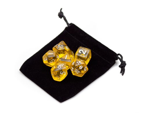7 Die Polyhedral Dice Set - Translucent Yellow with Velvet Pouch By Wiz Dice