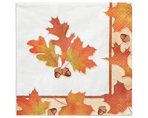 - Autumn days lunch napkins feature a bright and colorful design with illustrated fall leaves and acorns