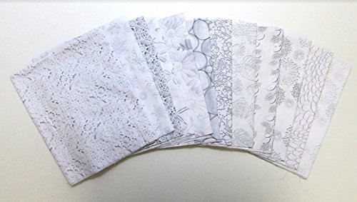 White Out Grey with Blue Tones 12 pc Cotton Fabric Quilting FQs Assortment by Benartex Studio