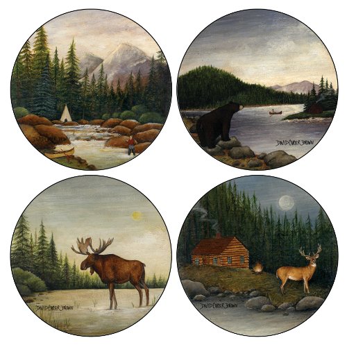 CoasterStone AS8580 Absorbent Coasters, 4-1/4-Inch, Northwoods River Bear Moose Deer Collection, Set of 4