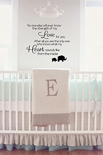No One Else Will Ever Know the Strength of My Love For You Nursery Vinyl Wall Decal - Nursery Decor, Elephant Decals, Bedroom Decor, 23" W x 20" H (Black, Matte)