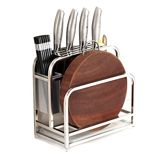 -. Title : POTOLON   まな板・包丁・箸スタンド  丈夫なステンレス製  キッチン収納  トレー・フック付き 丈夫で長持ち・抗菌・洗い易い