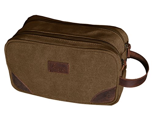 Mens Canvas Toiletry Bag Rustictown Bathroom Bag Genuine Leather Womens Cosmetic Makeup Organizer Shaving Dopp Kit Toiletries Case for Traveling Large (Deep Brown)