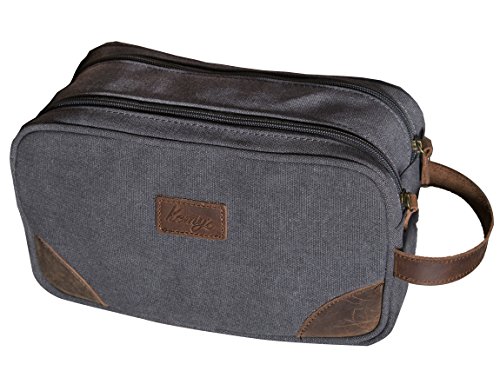 Mens Canvas Toiletry Bag Vintage Men Shaving Dopp Kit Bathroom Kits Bags with Double Compartments for Travel, Grey, Large