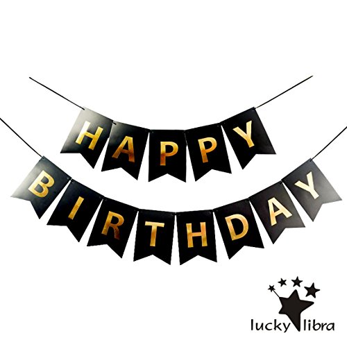Lucky Libra Black Happy Birthday Wall Banner, Black Party Decorations, (Black)