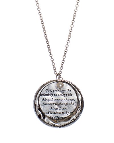 Let this necklace be your source of comfort and strength. Beautifully stamped with The Serenity Prayer: God grant me the serenity to accept the things I cannot change, courage to change the things I can, and wisdom to know the difference. Jewelry Nexus is dedicated to introducing jewelry that fits the lifestyle of today's woman. Quality product and first-class customer service have contributed to our reputation. Jewelry Care Instructions: Don't wear your jewelry to bed. Please store your jewelry in a protective container and keep away from sunlight and moisture. For mild cleaning please use a Silver Polishing Cloth.Feature