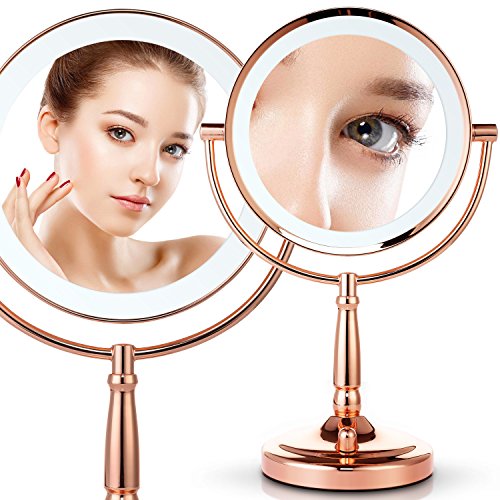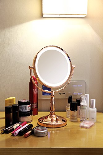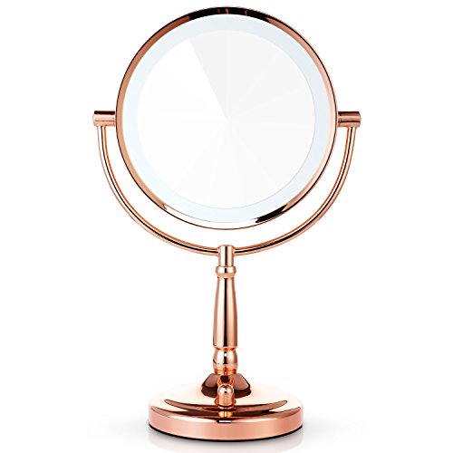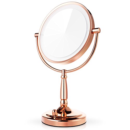 Miusco 7X Magnifying Lighted Makeup Mirror, 8 Inch Two Sided White Daylight LED Shadow Free LED Vanity Mirror, Battery and Adapter, Rose Gold