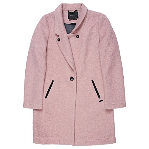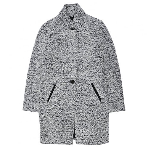 Product DescriptionBoucle light grey lined coat by Maison Scotch.Featuring one button closure with contrasting pocket trims with a look like black leather trim.0