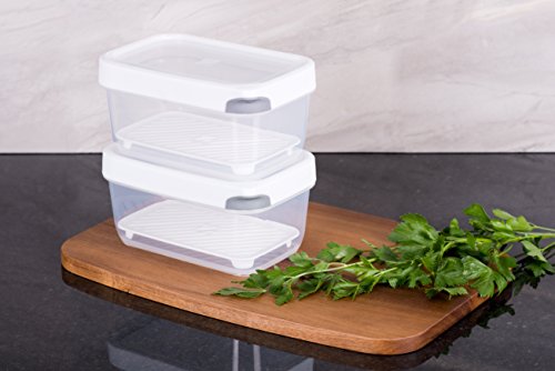 - Canisters come with an insert tray and a basket to lift food out of liquid and moisture, perfect for steaming!