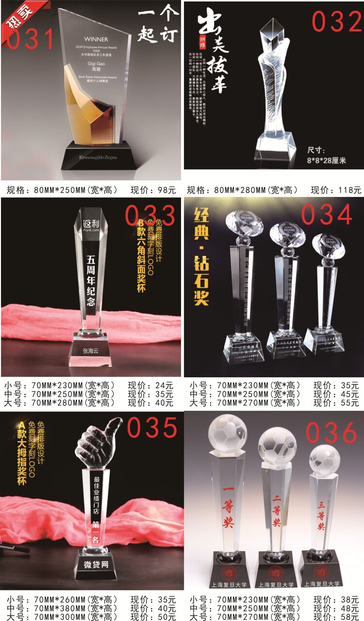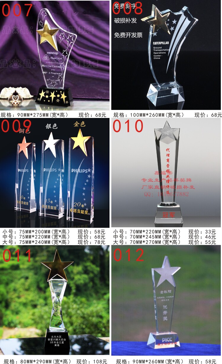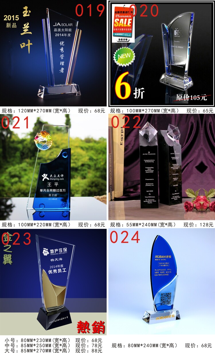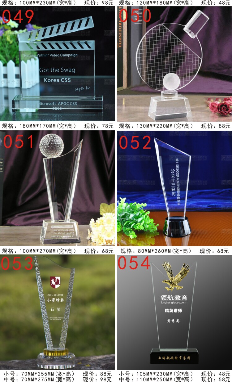 水晶奖杯定制 定做 奖杯 奖牌 授权牌 水晶加盟牌 刻字 颁奖庆典