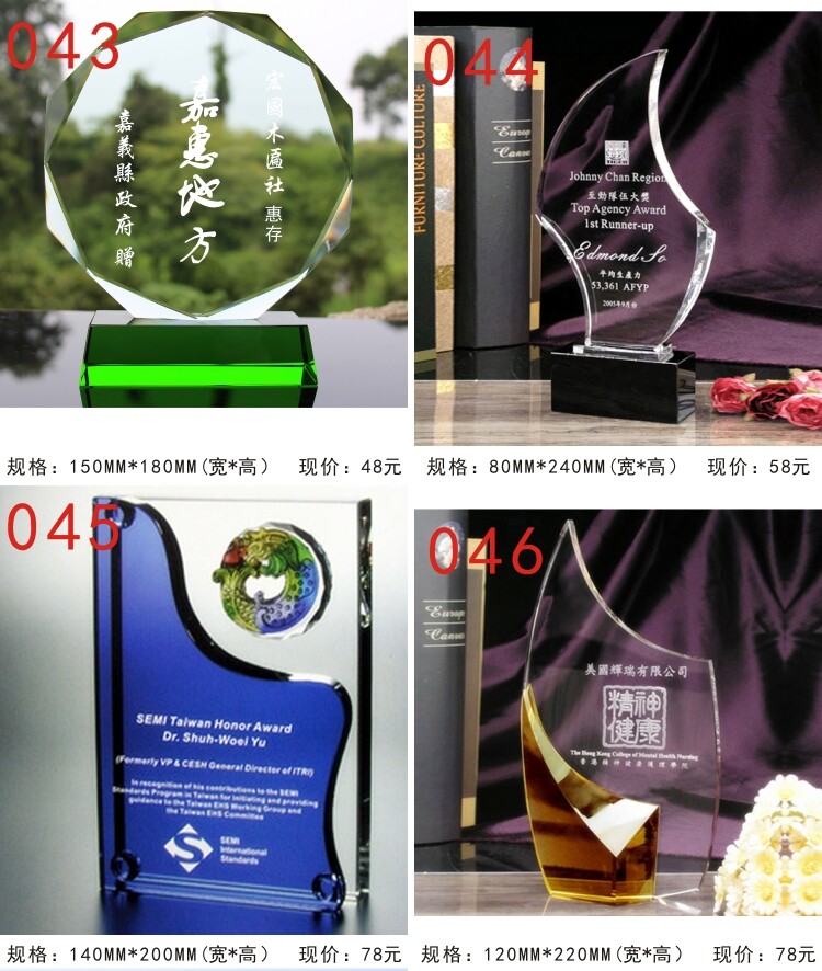 水晶奖杯 定做 加盟牌 奖牌 授权牌 纪念品 现货 退伍留念 热卖