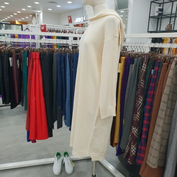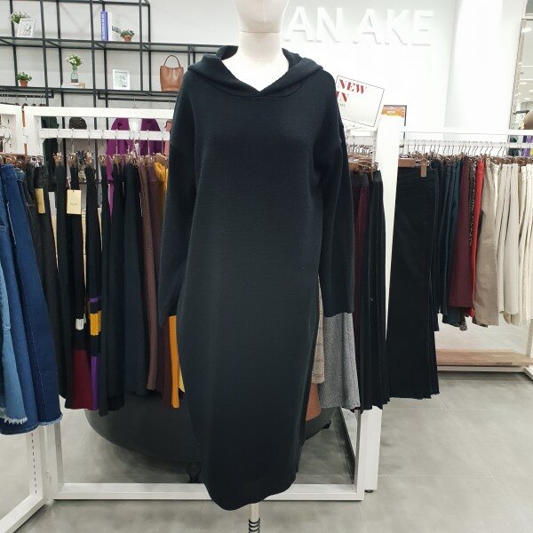 후드가 달려있어 캐주얼하고 멋스럽게 착용하기좋은 롱 기장의 니트원피스