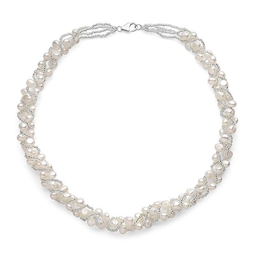 Beautifully Woven White Freshwater Cultured Pearl Necklace, Sterling Silver Clasp.