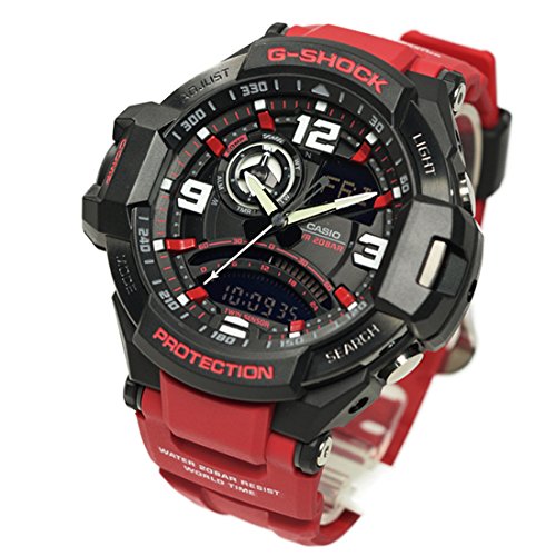 -. Feature : 状態:新品 型番:GA-1000-4BDR ムーブメント:クオーツ(電池式) 機能:方位計測機能、温度計測機能、ワールドタイム    ストップウオッチ、タイマー、時刻アラーム5本    電池切れ予告機能、フルオートカレンダー    12/24時間制表示切替、操作音ON/OFF切替機能    ネオンイルミネーター ケース 材質:樹脂 幅:52.1mm(リューズを含まず) 防水性:20気圧防水 クリスタル:無機ガラス 厚さ:16.6mm 本体重量:85g 文字盤(アナデジ) 色:ブラック インデックス:スティックインデックス、アラビア数字 ストラップ 素材:樹脂 色:レッド 幅(約):20mm 腕周り(約):最長21.5cm クラスプ:ピンバックル 付属品:付属品:説明書兼保証書 (英字)、CASIO専用BOX