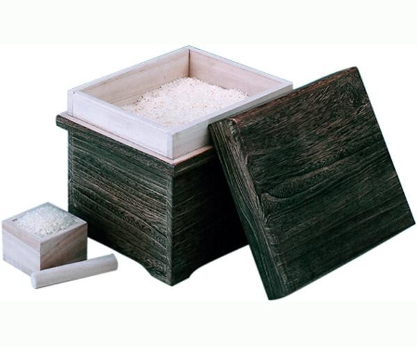桐には伸縮、膨張作用があり、中の湿度が一定に保たれます。桐の材には虫が寄り付きにくいので防虫効果もあるといわれています。計量に便利な枡付き。