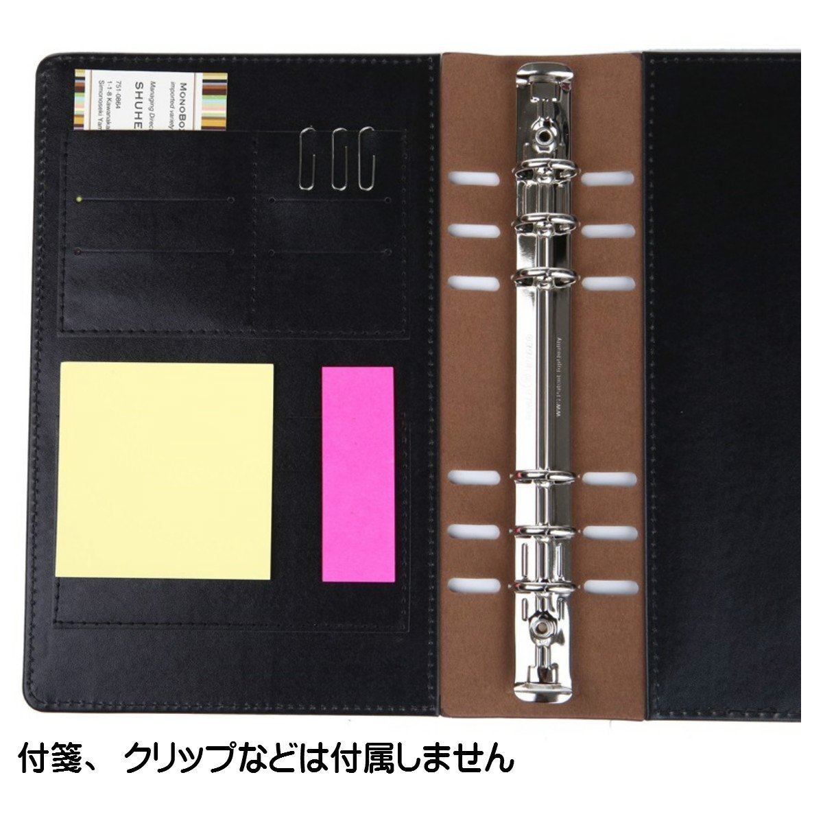 This time I attached a pocket so that I can manage sticky notes and clips as well as business cards.