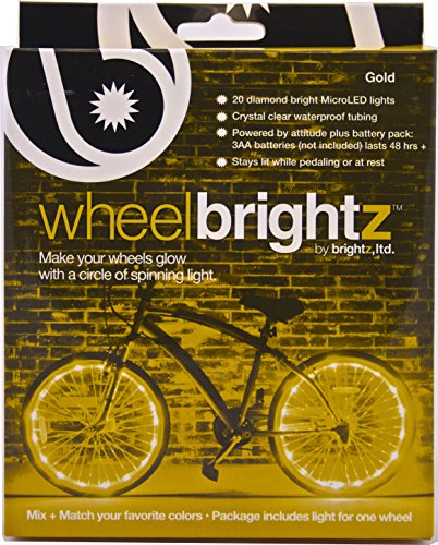 -. Feature : Wheel Brightz 7 feet of 20 MicroLED lights will last 48+ hours on 3 AA batteries - Not Included / Bike lights string comes in Waterproof Tubing / Light fits bike wheels 20 inches and up, on standard spokes. / Available in 8 solid colors - Red, Blue, Green, Pink, Multicolor, Gold, Orange, White - and Color Morphing! / Package includes light for ONE wheel