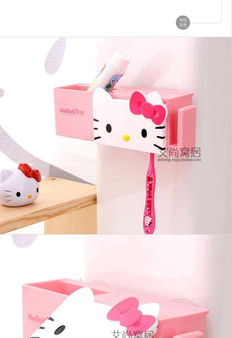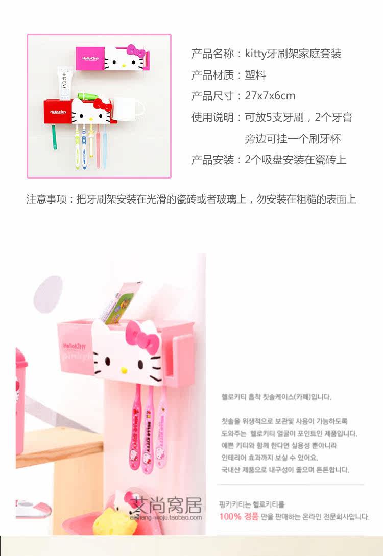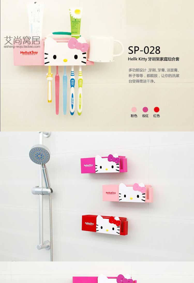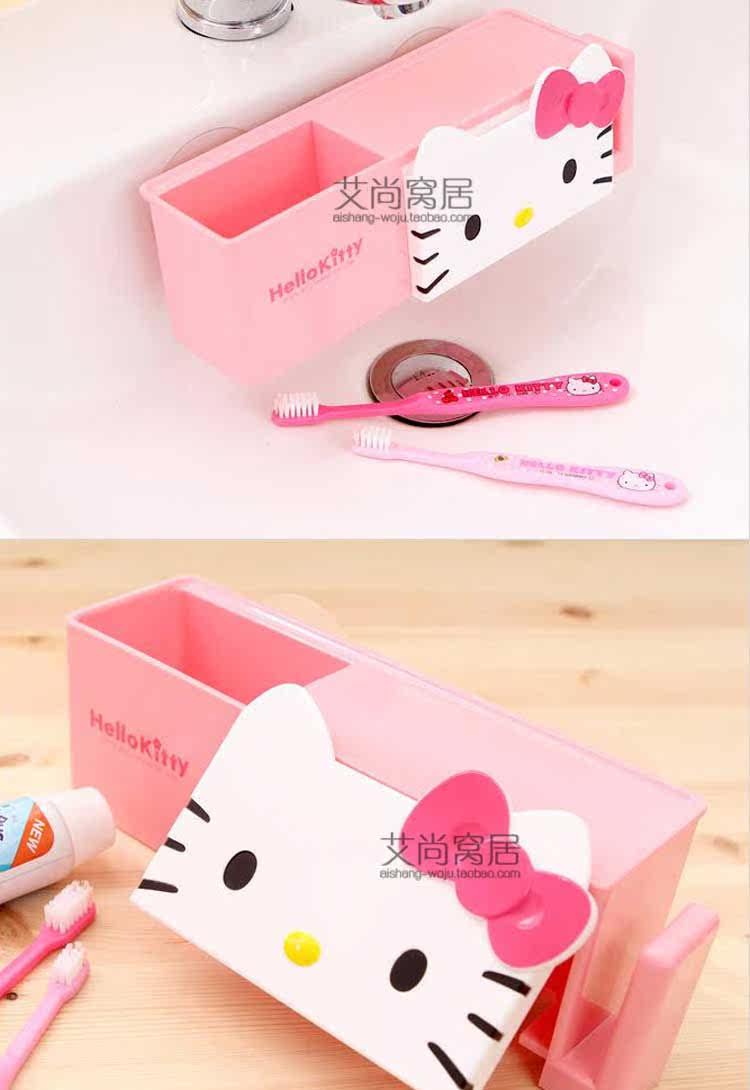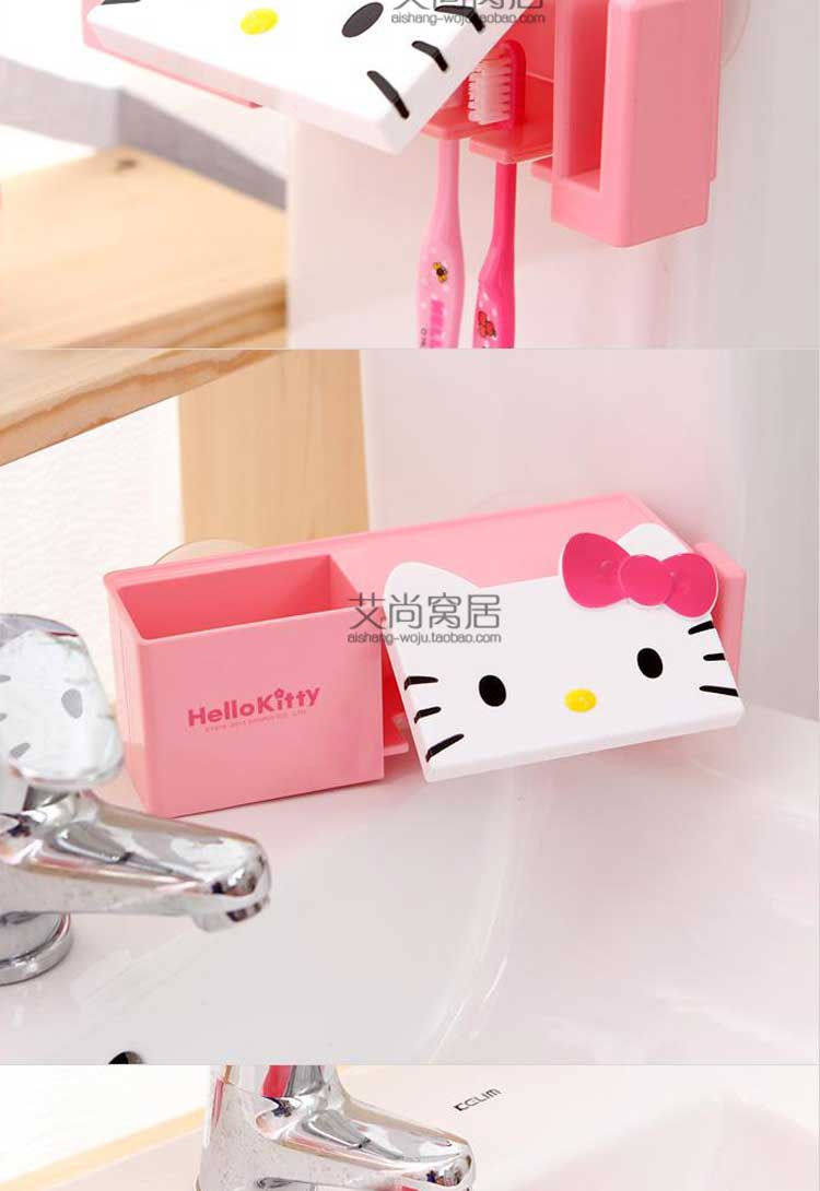 kitty牙刷架日本韩国创意可爱卡通浴室强力吸盘无痕家庭组合套装