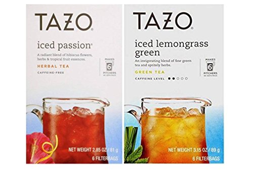 -. Title : Tazo Iced Tea Pitcher Bag Flavored Teas 2 Flavor Variety Bundle; (1) Tazo Iced Passion Caffeine-Free Herbal Tea, and (1) Tazo Iced Lemongrass Green Tea, 2.85-3.15 Oz. Ea.