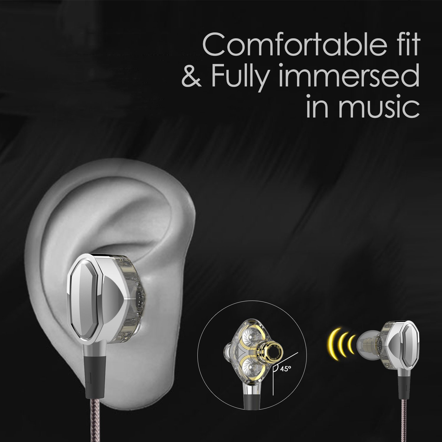 The angled acoustic vibe is designed according to the curvature of the human ear hole so that the sound waves emitted from the speaker accurately reach the eardrum with high accuracy.