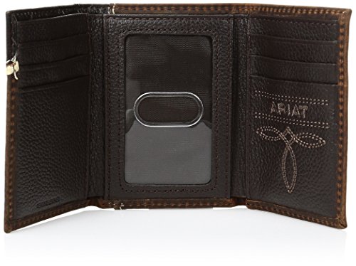 Studio : Ariat Men's Accessories Publisher : Ariat Men's Accessories Binding : Apparel Product Description This Ariat trifold wallet by medium and f western products features a distressed leather with an Ariat concho and tope stich. Inside features multiple compartments for your credit cards, cash, and a place for your id. 0