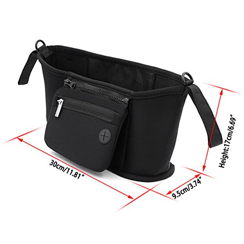 -. Feature : HIGH QUALITY MATERIALS - Made from the best black neoprene on the market. With strong adjustable Velcro Straps, this bag is super durable which you can use for your first, 2nd and 3rd baby and so on. / COMPATIBLE WITH ANY STROLLER - Buying a new Stroller or maybe you want to lend your Organiser to a friend? No worries. Our Baby Stroller Organiser is compatible with almost EVERY Stroller on the market. This is the ONLY Baby Stroller Organiser you ever need. / MULTI-STORAGE - We designed our organiser so you can bring as many of your essential things as possible on your walk. Cup and bottle holders, nappy storage, wipes, bibs, soothers and toys and 1 Premium removable zippered bag and more. / FASHION DESIGN - Modern stylish black Baby Stroller Organiser for a classy look for your Stroller with a space to store your smartphone and a hole so you can easily use your headphones and play your favorite music while strolling around with your loved one. / IT'S SUPER EASY to attach to your baby stroller, takes just a few seconds to put on and you're ready to go!
