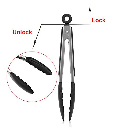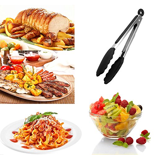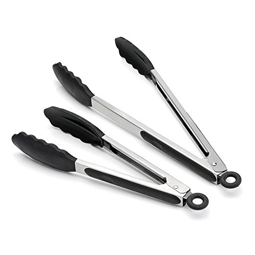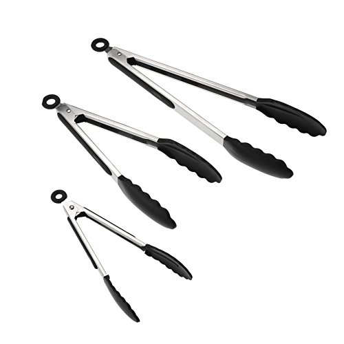 Sunshinedo Cooking Tongs for Kitchen Utensils with Silicone Tips - Heat Resistant Silicone Tongs for BBQ,Cooking,Salads and Serving,Set of 3 ( 7,9 and 12 Inch ) ,Black