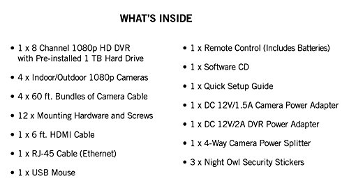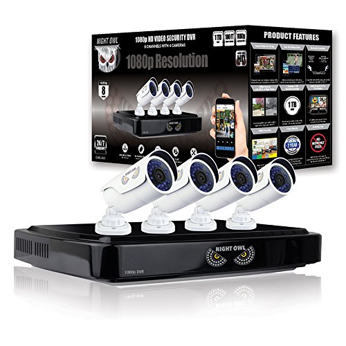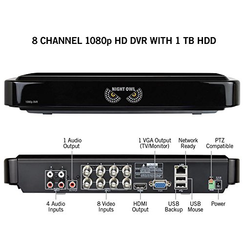 NIGHT OWL C-841-A10 8 Channel 1080P DVR Security System, 4 HD 1080p Cameras 1 TB HDD (Black DVR/White Cam)