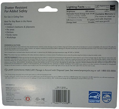 Philips 14W (60W Equivalent) Candelabra Base, CFL Shatter Resistant Light Bulb (12 Bulbs)