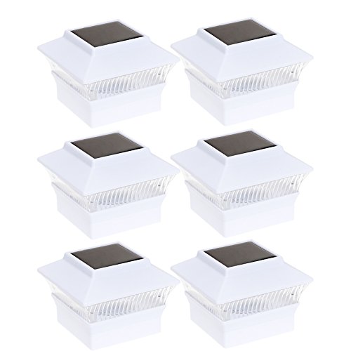 6 Pack Solar Power Square Outdoor Post Cap Lights for 4x4 PVC Posts (White)