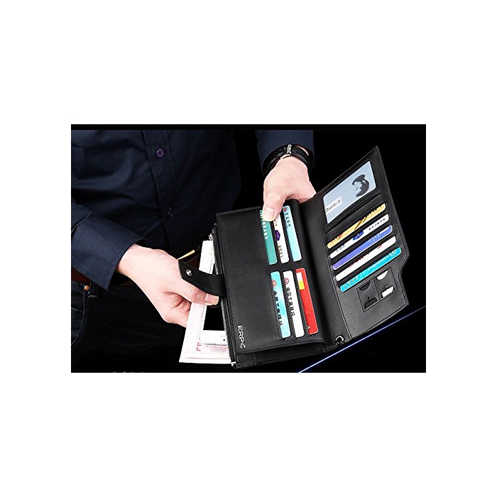 【정규 대리점 상품】ERPC 레더 가죽 소가죽 ZIP 장지갑 카드대 용량 수납 가능 iPhone 등수납 가능 여행 출장 비지니스에 기능 충실 수납력 있음
