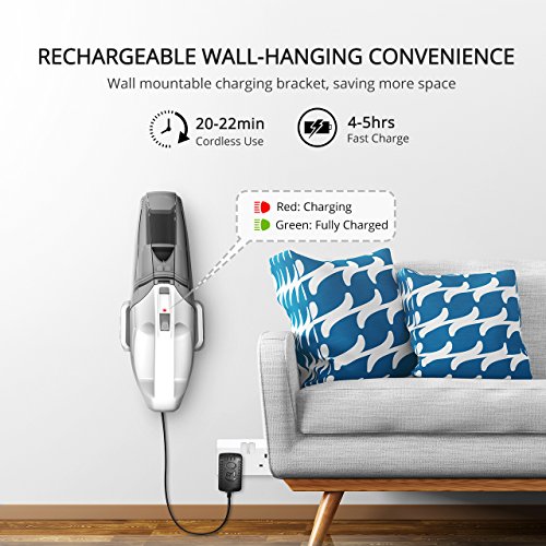 Homasy Cordless Handheld Vacuum, Portable Lightweight Vacuum Cleaner with Fast Charge, Wall-Mounting Charge Base, Cyclonic Powerful Suction, Dry Wet Amphibious Dustbuster for Cars, Home, Pet Hairs