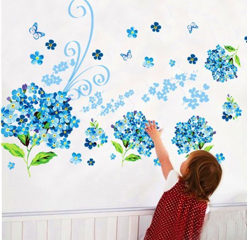 -. Title : Amaonm® Romantic Pink Hydrangea Flowers Flower Vines and Butterfly Wall Decals Home Art Decor Stickers Murals Peel Stick for Tv Background Living Room Baby Kids Girls Bedroom Study Room