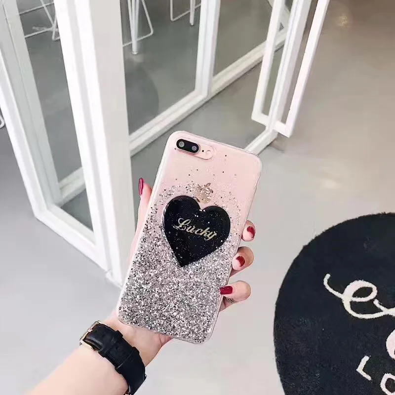 feature: for iphone 6 6s plus 7 7 plus luxury women 3d black heart bling case