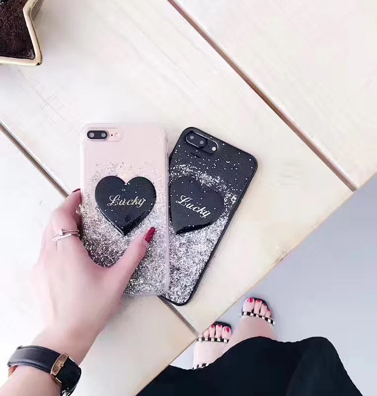 design:luxury korean 3d heart liquid case for iphone 7 7 plus 6 6s plus fema