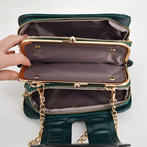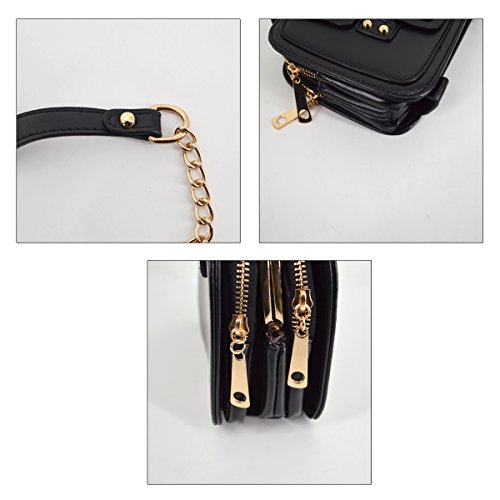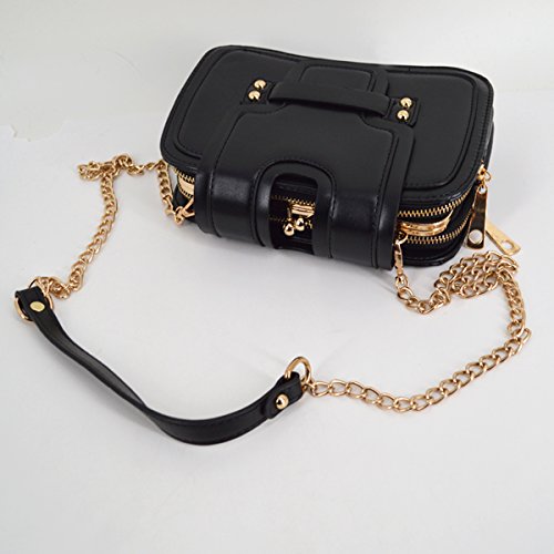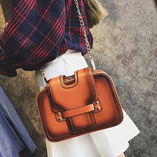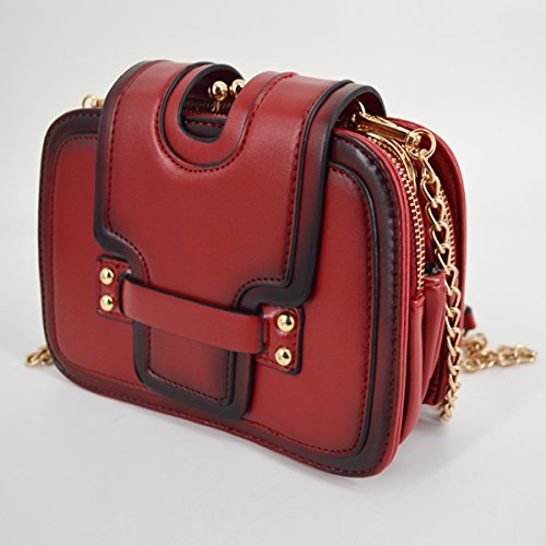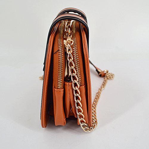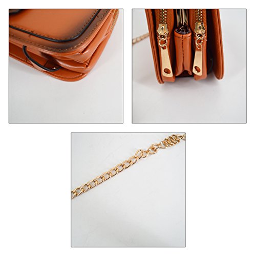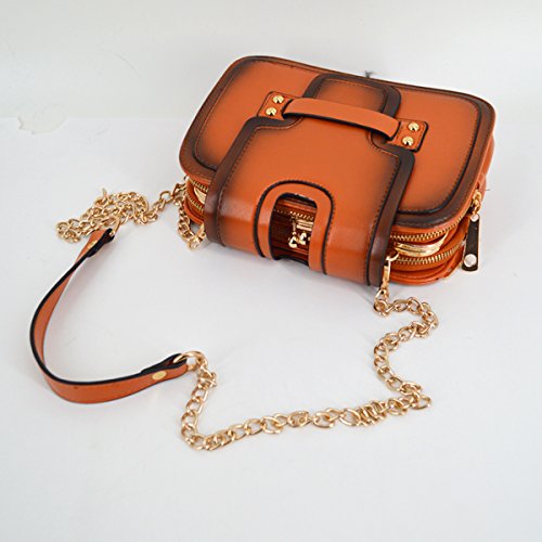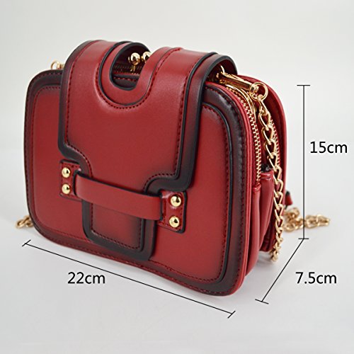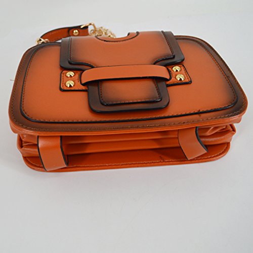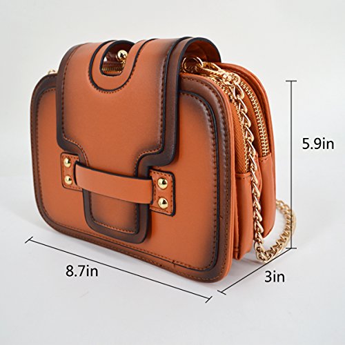 Gold tone chain shoulder strap, detachable versatile design, three chic wearing ways. Trendy vintage design, deliberately fading effect, perfect for all occasions. Three layer folding compartments, enough bag space to meet your daily needs.