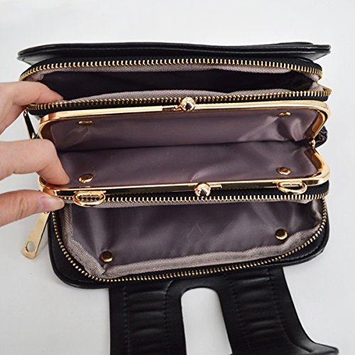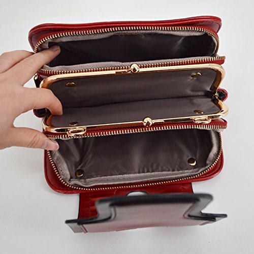 Material: faux PU leather and polyester lining Color: Brown/Blue/Red/Black Pattern: solid Size: 8.7*3*5.9in Closure: clasp and zipper Suitable For: girls and ladies