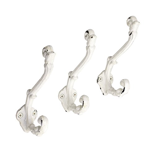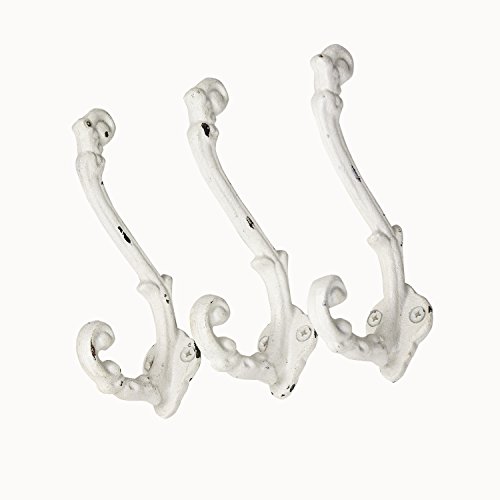 Sheffield Home Wall Hooks, Cast Iron, Rustic Chic Shabby Vintage Style, Set of 3, Farmhouse Decor, Clothes Hanging Idea for Hats, Coats, Scarves, Bags Closets, Wall Hanging,