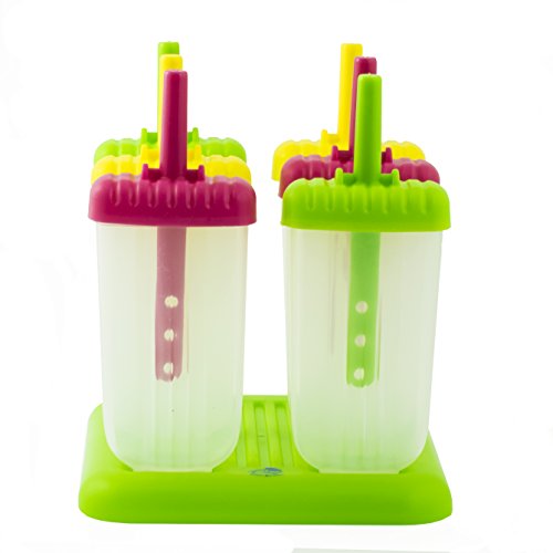 EXCITING COLORS: Choose between green, pink, or a mix of green, pink and yellow molds. The set's tray ensures they stay upright in the freezer.