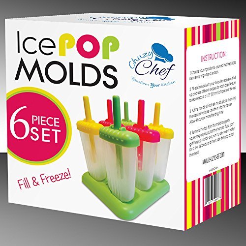 Popsicle Ice Mold Maker Set – 6 Pcs Bpa Free Assorted Colors Ice Pop Mold Holders With Tray – Fun for Kids and Adults – Great for Party Indoor Outdoor use – Chuzy Chef