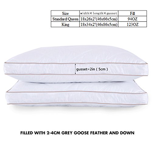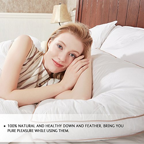 Puredown Goose Down Feather Pillows for Sleeping Down Pillow King Cotton Pillow Cover for Siding Sleeping Set of 2