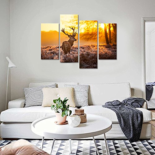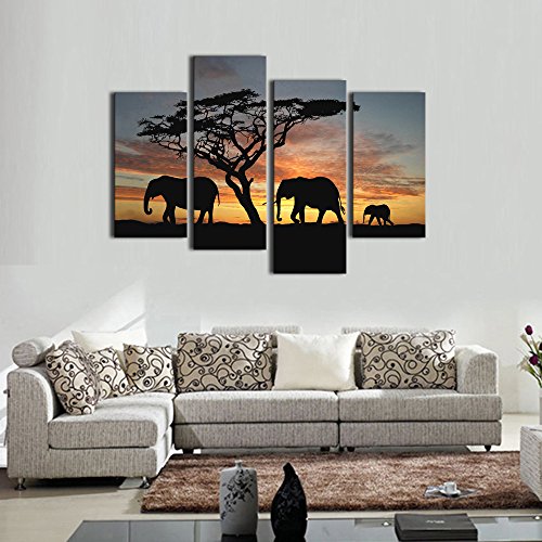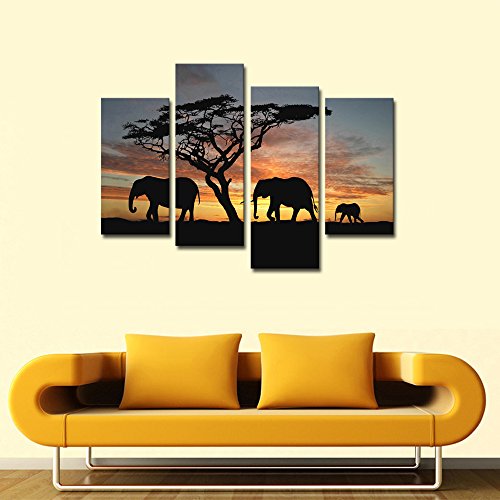 -. Title : Modern Canvas Wall Art Decor African Forest Elephant Home Decoration Landscape Mural Art on Canvas 4pcs/set,Framed and Stretched,Ready to Hang on
